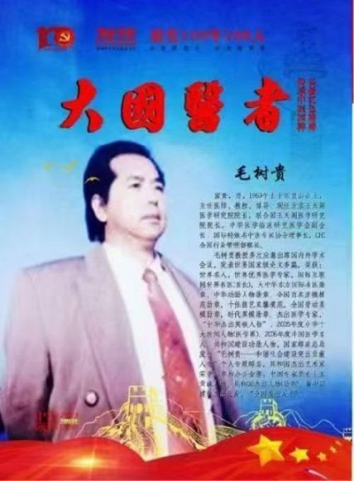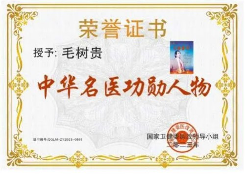 国家功勋,旷世神医。国家一级国医大师。主任医师、教授、国医泰斗兼中医行业主席、博导、国家中医药战略科学家,国医大师功勋人物、旷世神医、中医泰斗、国宝级中医。北京玉天阁医学研究院院长,中华医学临床研究医学会副会长,国际特效名中医专家协会理事长,C..全国行业管理督察长。“十四五”国家中医药杰出人才——战略科学家。《人民日报,中 央热点观察,新华网中华英才、中国新闻联播、CCTV央媒头条、中国教育、中 央新闻两会专栏,党 政新闻网,政 治新闻网:国家中医药战略科学家·中医泰斗国医大师功勋人物——救世活人毛树贵》……。