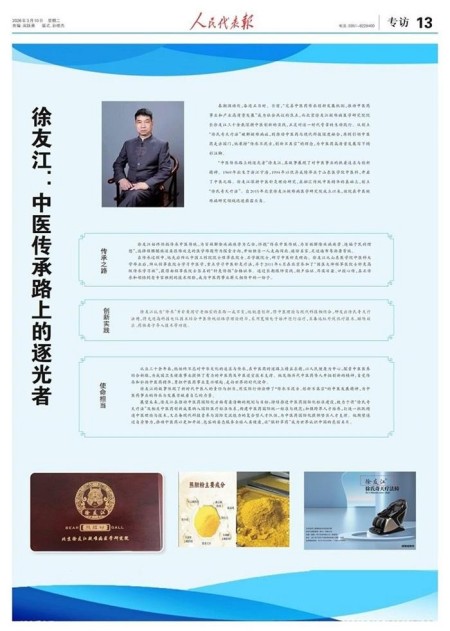 徐友江院长凭借精湛医术与突出贡献荣登《人民代表报》,以中医创新助力健康中国,书写新时代国医风采。