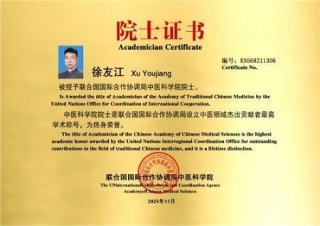 2025年,国际学术界传来振奋人心的消息:中国著名中医药专家、“徐氏奇天疗法”创立人徐友江先生当选世界智慧科学院院士。这一荣誉不仅是对其三十余年深耕中医创新领域的最高认可,更标志着中国传统医学与现代科技融合成果正式获得国际权威机构高度关注,为中医药走向世界树立新标杆。